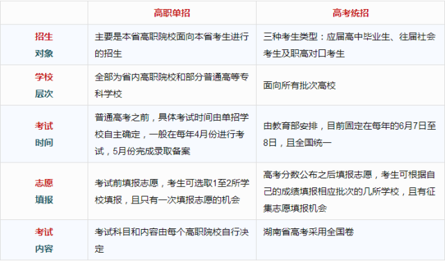 那么,湖南中高職單招與高考統(tǒng)招到底有哪些區(qū)別呢?