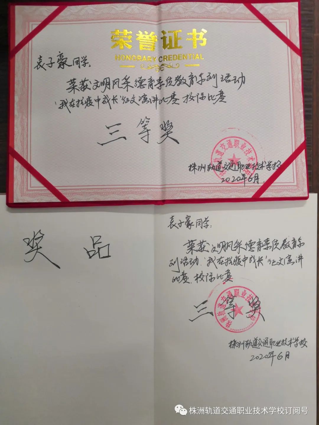 株洲軌道交通職業技術學校“我在抗疫中成長”征文演講比賽獲獎名單