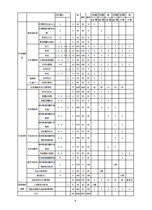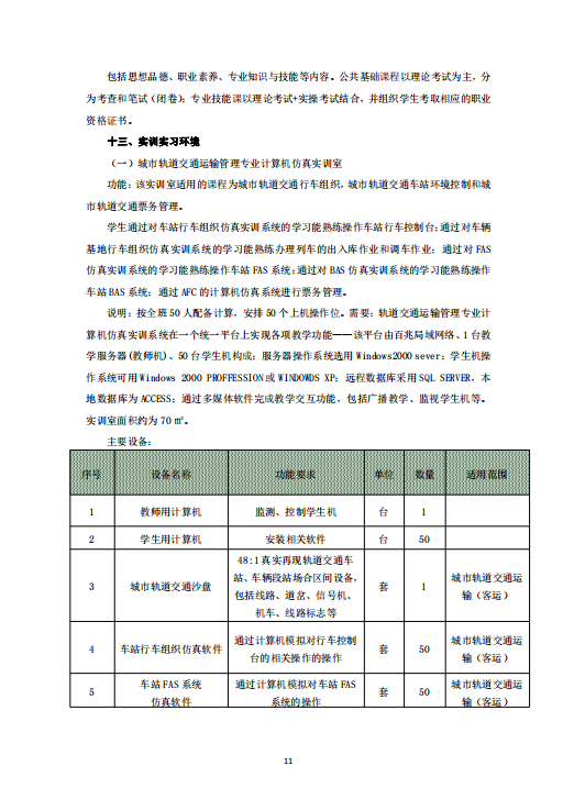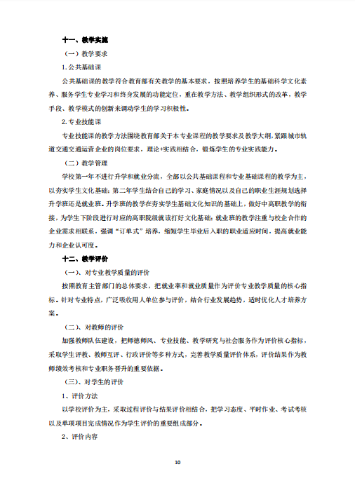 城市軌道交通運營管理專業 (升學方向)人才培養方案
