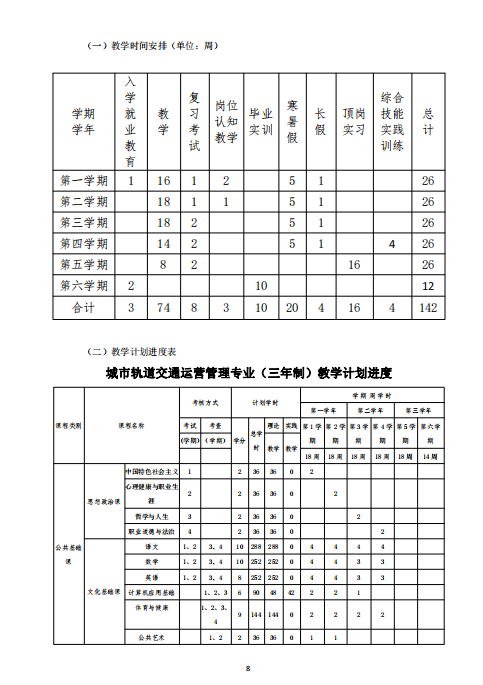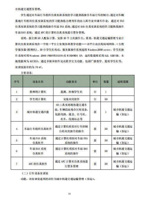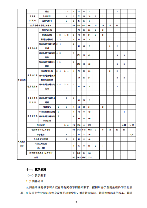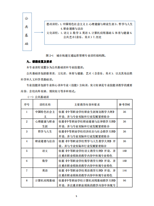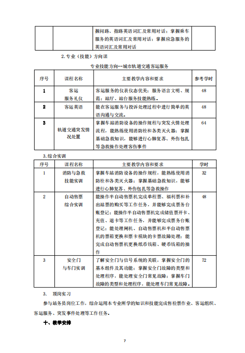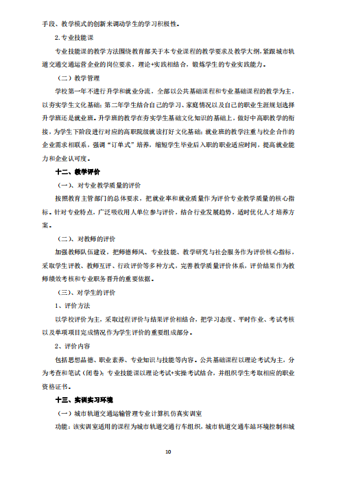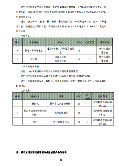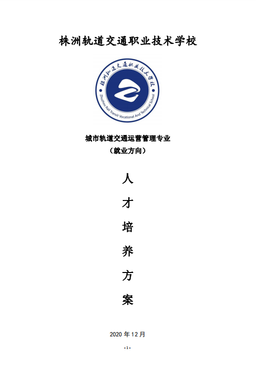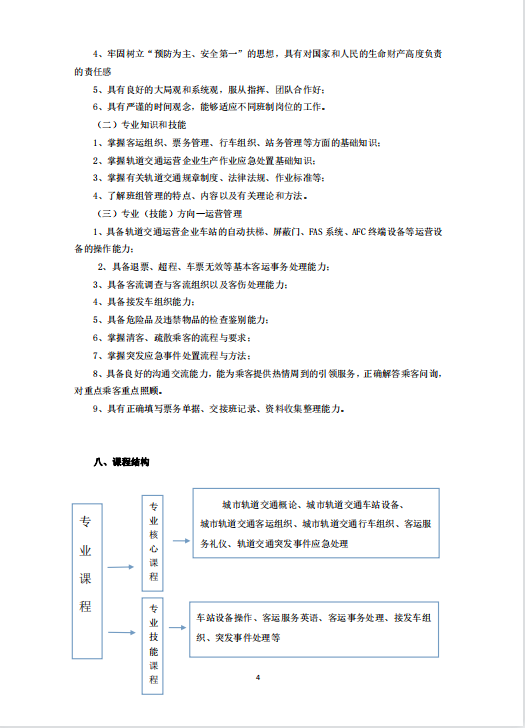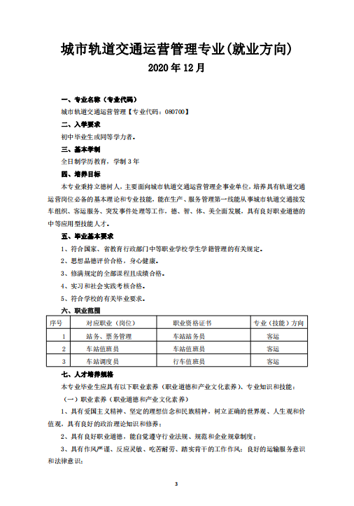 城市軌道交通運營管理專業 (就業方向)人才培養方案