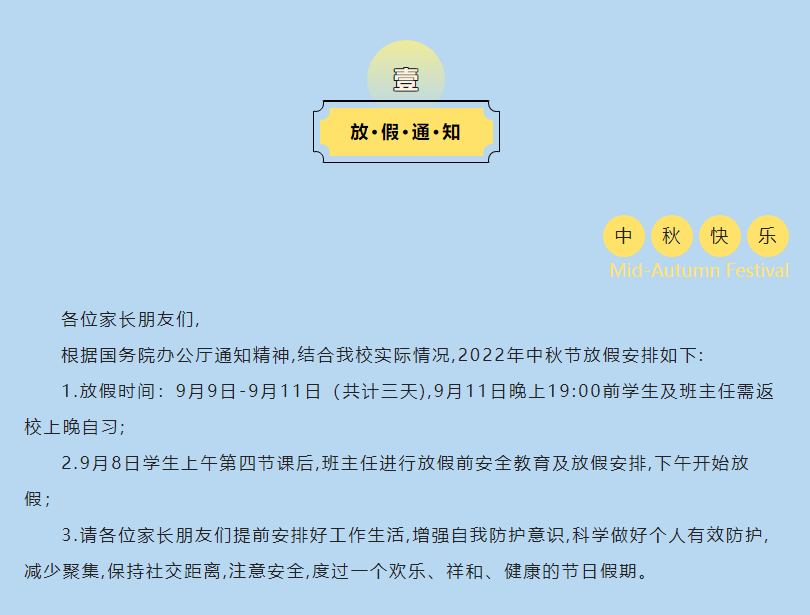 中秋佳節放假通知
